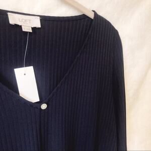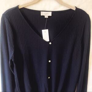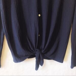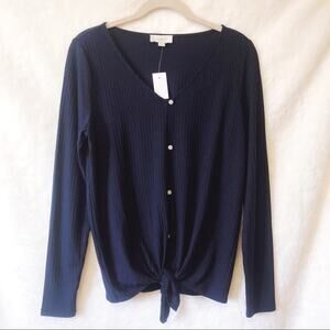 LOFT Blue Button Tie Hem Long Sleeve Shirt