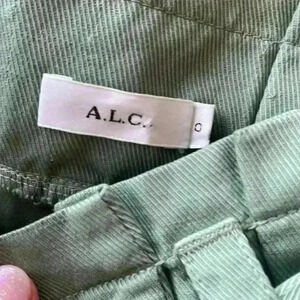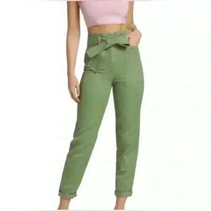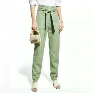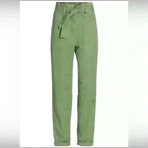 A.L.C. Corin Paperbag Pants in fern. High-waisted. Paperbag waist. Zip fly with hook and self-tie waist. Side patch pockets. Slim relaxed fit. Straight legs.