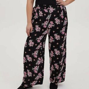 Torrid Black and Pink Floral Wide Leg Pants