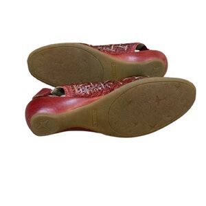 Pikolinos Leather Cutout Slingback Shoes Red Woven Comfort Low Wedge 37