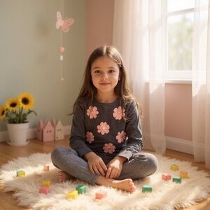 Kate Spade Girls Sz 14y sweater Cotton embroidered flowers sequins pink grey NWT