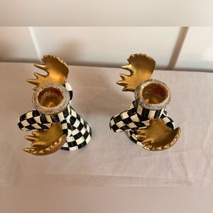MacKenzie Childs courtly check moose candle holders holiday checkered whimsical