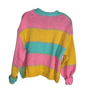 Colorblock Knit Cardigan Open Front Puff Sleeves Large