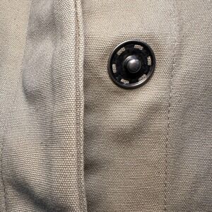 The Gap Log Jacket Trench Coat is a vintage 90's piece made of 100% cotton with a canvas fabric type, perfect for travel and casual occasions. This women's size XS khaki trench coat features button-up closure, long sleeves, and multiple pockets for added functionality. The classic and 90s-themed jacket has a solid pattern, a long jacket/coat length, and is dry clean only for maintenance. Ideal for the winter, fall, and spring seasons, this Gap trench coat is a stylish and timeless addition to any woman's wardrobe.