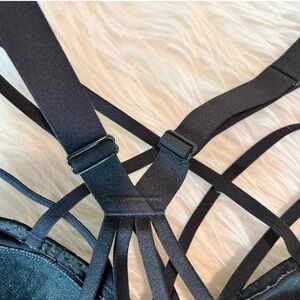 Chic and supportive sports bra with strappy design. Ideal for active wear.