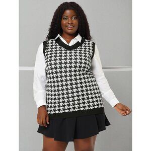 Features: Soft, stretchy, and super comfortable. This sleeveless vest features a chic V-neck with a trendy houndstooth print, oversized fit, and a relaxed silhouette—great for mixing and matching with your favorite casual looks. Ideal for autumn and winter, especially for holiday vibes or casual outings.