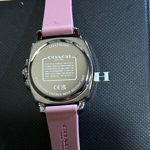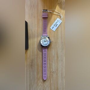 Coach Boyfriend Watch With 34mm Silver Face & Pink Silicone Band