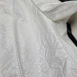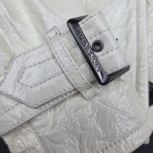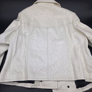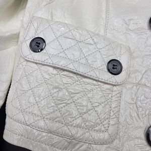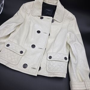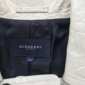 Elevate your style with this gorgeous Burberry cream double-breasted jacket. Perfect for any occasion, it offers a sophisticated look with its classic design and elegant color. Burberry Cream Coated Lambskin Leather Double Breasted Coat Size M. Excellent Condition. Beautiful rare material Like crinkled, shiny appearance that look so elegant.