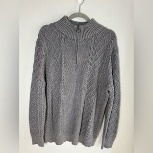 Paul Jones Gray Cable Knit Quarter Zip Pullover Sweater Fisherman Men's Size XL