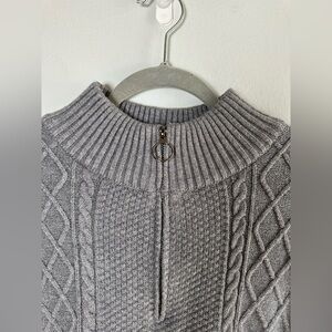 Stay warm and stylish with this classic gray cable knit sweater. Perfect for any occasion.
