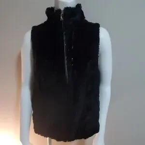 Betsey Johnson Black Faux Fur Sequined Vest (M)