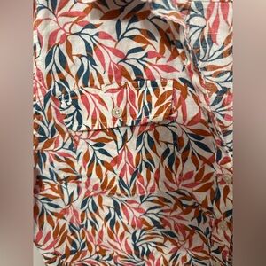 Lands' End Multicolor Leaf Print Shirt 100% Linen