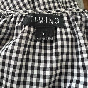 🔥🔥Timing Womens Size L Long Sleeve Shirt Black/White Check Off Shoulder Ruffle