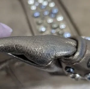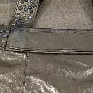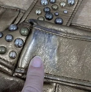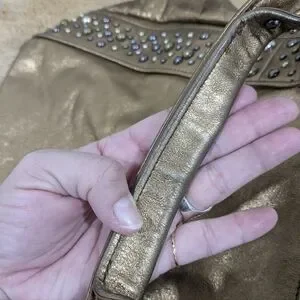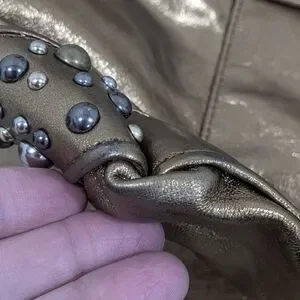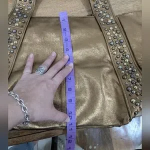 Elevate your style with this stunning studded genuine leather bronze colored bag with multite color studs, it is vintage and has some wear on the bottom, corners under that straps and on on side due to friction. The interior is in amazing condition, I don't see any significant stains. Please refer to all images as they are essential in the description of the item thank you for checking out my closet all sales are final and there are absolutely NO RETURNS, sold as is. Perfect for any occasion, this bag combines elegance and functionality. I can't cancel orders once they have been submitted you will need to contact Poshmark.