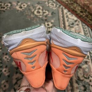Elevate your run with Hoka's peach and coral shoes. Lightweight and breathable design. Ideal for athletes.