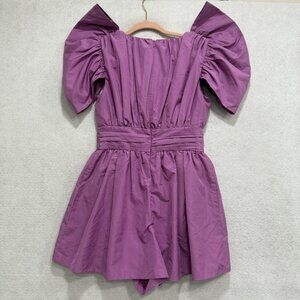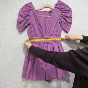 Express Romper Womens 2 Purple Puff Sleeve V Neck Mini Dress Conscious Edit