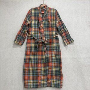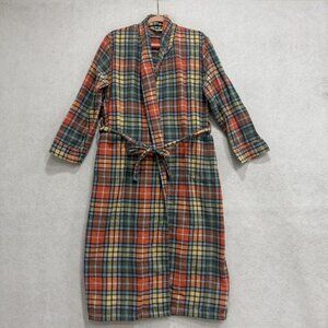 LL Bean Robe Womens Small Petite Red Green Plaid Flannel Cotton Lounge Wear