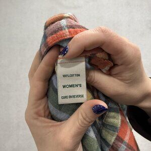 Color/Pattern: Multicolor red, green, yellow, and blue plaid.