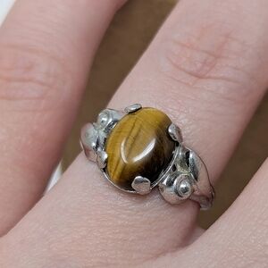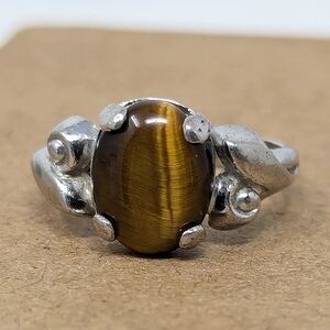 Sterling Silver 925 Vintage Brown Tiger Eye Stone Ring