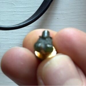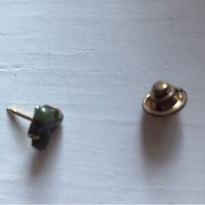 Elegant gold and green pin brooch. Perfect for any occasion. Great gift for the spiritual and jade lover. Buddha Jade Pin. Vintage. 3/4 “ x 1/2 “. Marked. S inside a triangle. By Swank. Miniature pin. With deluxe clutch. See pictures. In very good condition.