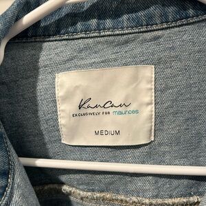 Stylish cropped denim jacket with frayed hem. Perfect for casual outings.