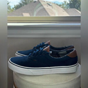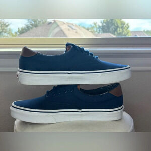 Great condition- some minor signs of wear on outer sole. Leather and upper like new. Very clean soles. Will look perfect with minimal TLC. Navy blue with cognac leather accents. Perfect versatile and classic shoe for any look.