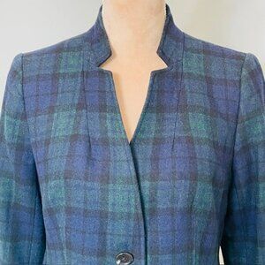 Talbots Black Watch Tartan Plaid Classic Blazer Jacket Navy Green Wool Blend 8 P