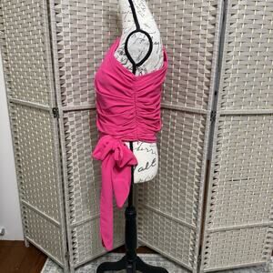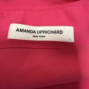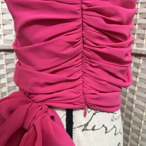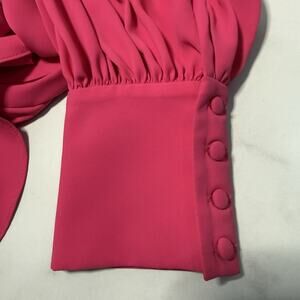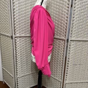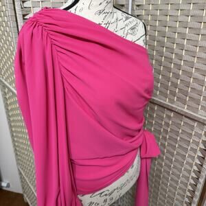 Amanda Uprichard BEXLEY One Shoulder Blouse Size L Lacquer Pink Long Sleeve Tie