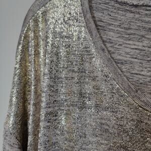 Dantelle gold metallic long sleeve blouse. Round neckline, and high low hem.