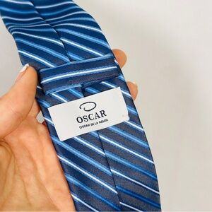 Oscar de la Renta Blue Striped Polyester Tie Vintage Businesscore Classic