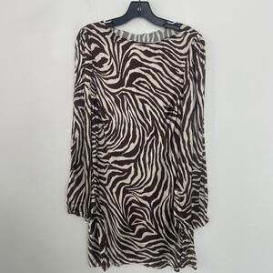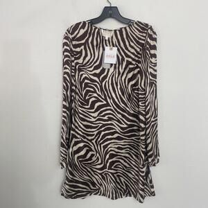 Revolve Stone Cold Fox Dress Basier Dress brown zebra satin size L $228msrp