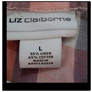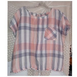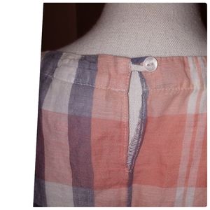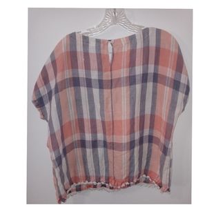 Neutral Check Print Linen Cotton Blend Gray White Peach Orange Top Size Large●