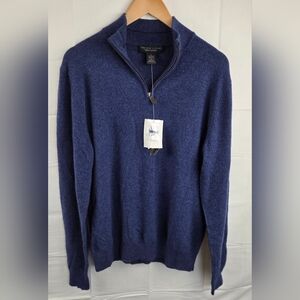 Bloomingdales Sweater Mens Large Blue Pullover 1/4 Zip Solid 100% Cashmere New