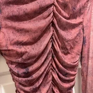 Zara Ruched Long Sleeve Blouse - Deep Burgundy/pink. Sheer