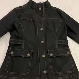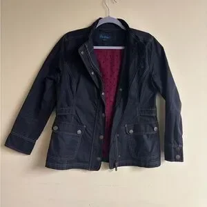 Chic black utility jacket by Boden. Features button details and multiple pockets. Ideal for layering.