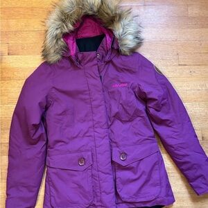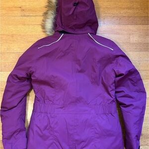 Stay warm and stylish on the slopes or trails with the Ski-Doo Women's Ski Jacket. This beautiful magenta purple jacket features a cozy detachable fur-lined hood for added comfort. Worn once