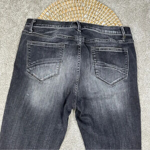 Driftwood Jackie Embroidered Hem Stretch Skinny Jeans Mid Rise in Dark Gray 30