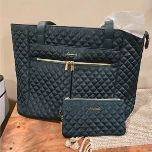 SOLD LOVEVOOK Green Quilted Tote Bag With Wristlet
