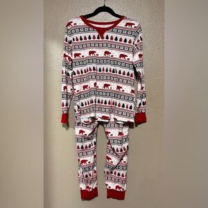 Embrace the festive spirit with the Wondershop Pajama Set, featuring a classic Nordic design in red and white. This cozy two-piece set includes a long-sleeve top and matching pants adorned with charming winter motifs and geometric patterns. Perfect for a snug and stylish holiday season. 100% cotton, super comfortable!