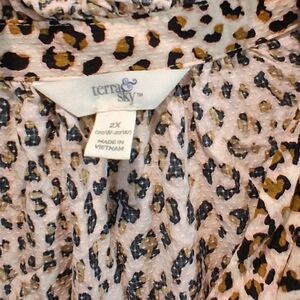 Terra & Sky Brown Leopard Print Women's Size XXL High-Low Peasant Midi Dress