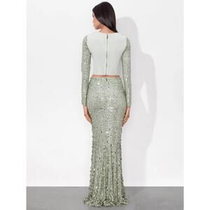 ALICE + OLIVIA Delaina Long Sleeve Sea Green Sequin Crop Top