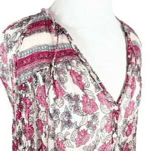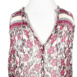 Free People Sheer Peasant Top Floral Oversized Romantic Boho Shirt Size XS