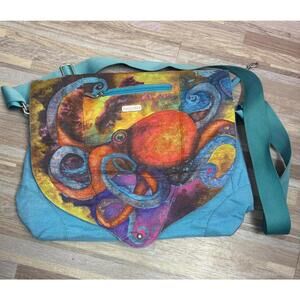 Hand-Painted Octopus Messenger Baggallini Canvas Crossbody One of one Art Tote