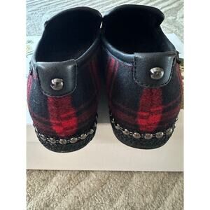 Chelsea & Violet Red Black Plaid Faux Fur Slip-On Studded Slippers Size 6 New