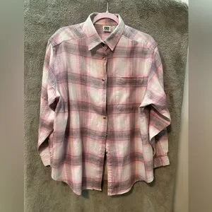 Stylish plaid button-down shirt. Features a classic collar and front pocket. Perfect for casual wear.