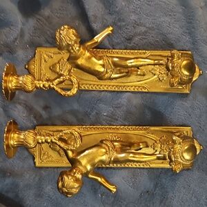 Lancini Italian Antique Brass Cherub Wall Sconce Candle Holders