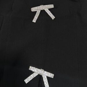 This structured, fitted silhouette gives the perfect elevated going-out look with a feminine glam touch. The sparkling bow embellishments add subtle statement shine while keeping it classy and chic.