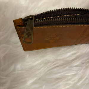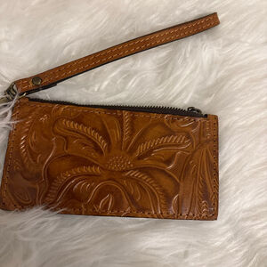 Women's Patricia Nash Brown Leather Wristlet Clutch Mini Zip Wallet
