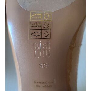 Anthropologie Bibi Lou Heeled Ballet Pumps Patent Leather Shoes Bow EU 39/US 8 Camel NWOB