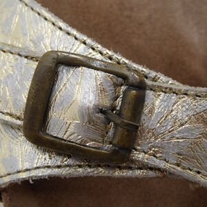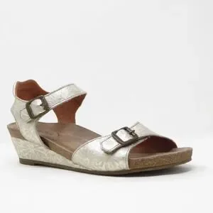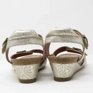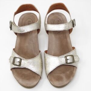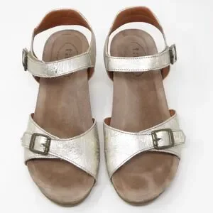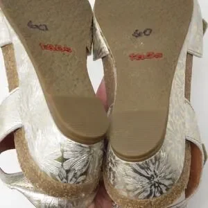 -Taos Traveler Silver Gold Floral Wedge Sandals Leather Size 39 EU / 8-8.5 US